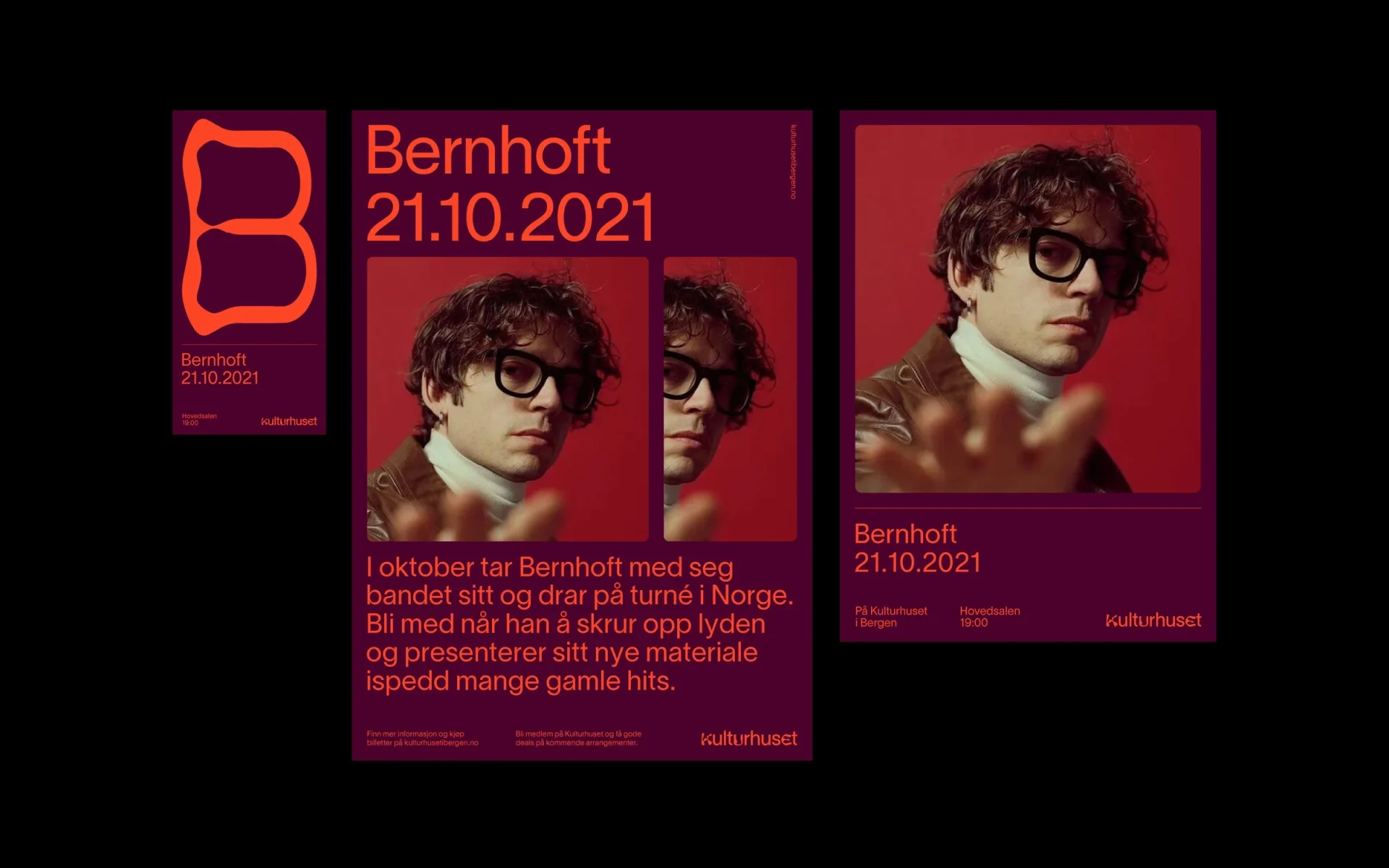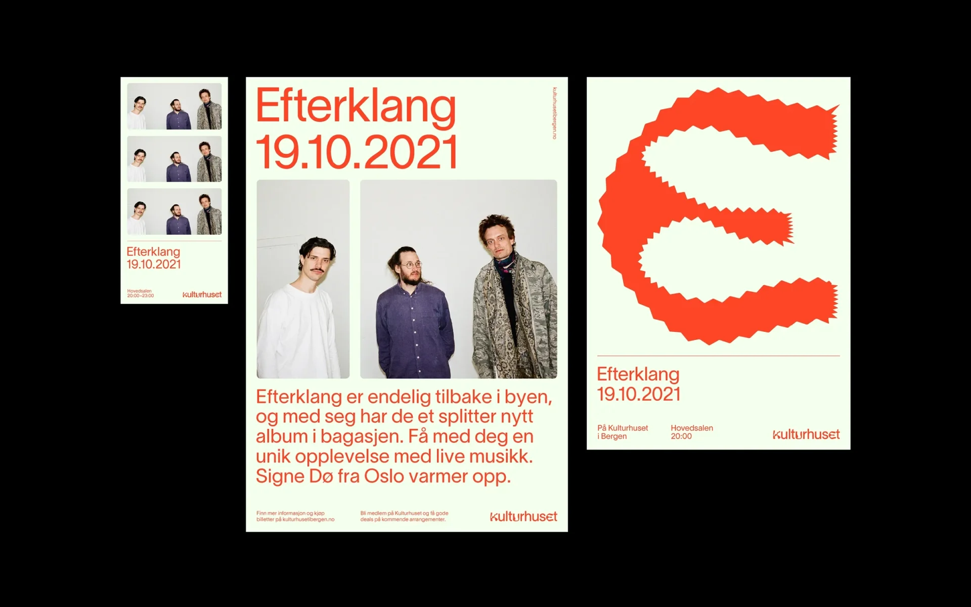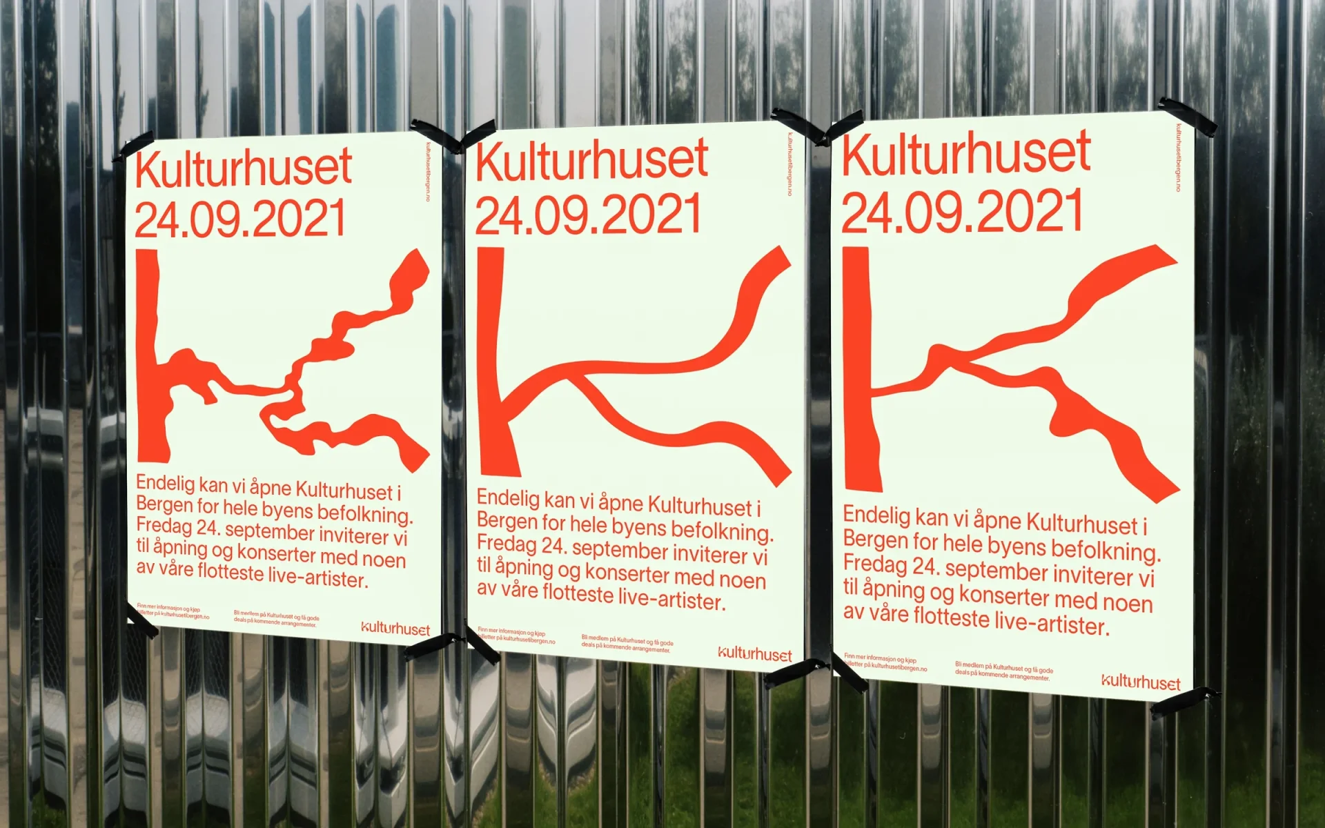 Identiteten påvirkes av opplevelsene i Kulturhuset. Ved å ta i bruk teknologiske verktøy har vi laget et generativt designsystem. En 100% fri og uventet identitet som påvirkes av lyd – kjernen i innholdet vårt. En identitet som berikes i takt med publikum. Fra rolig brunsj til en rørende utstilling, opera og rave. Identiteten har rom for enhver emosjon. Resultatet er en nyskapende, distruptiv og sjangerfri visuell identitet som beriker oss med originale og uventede kombinasjoner.