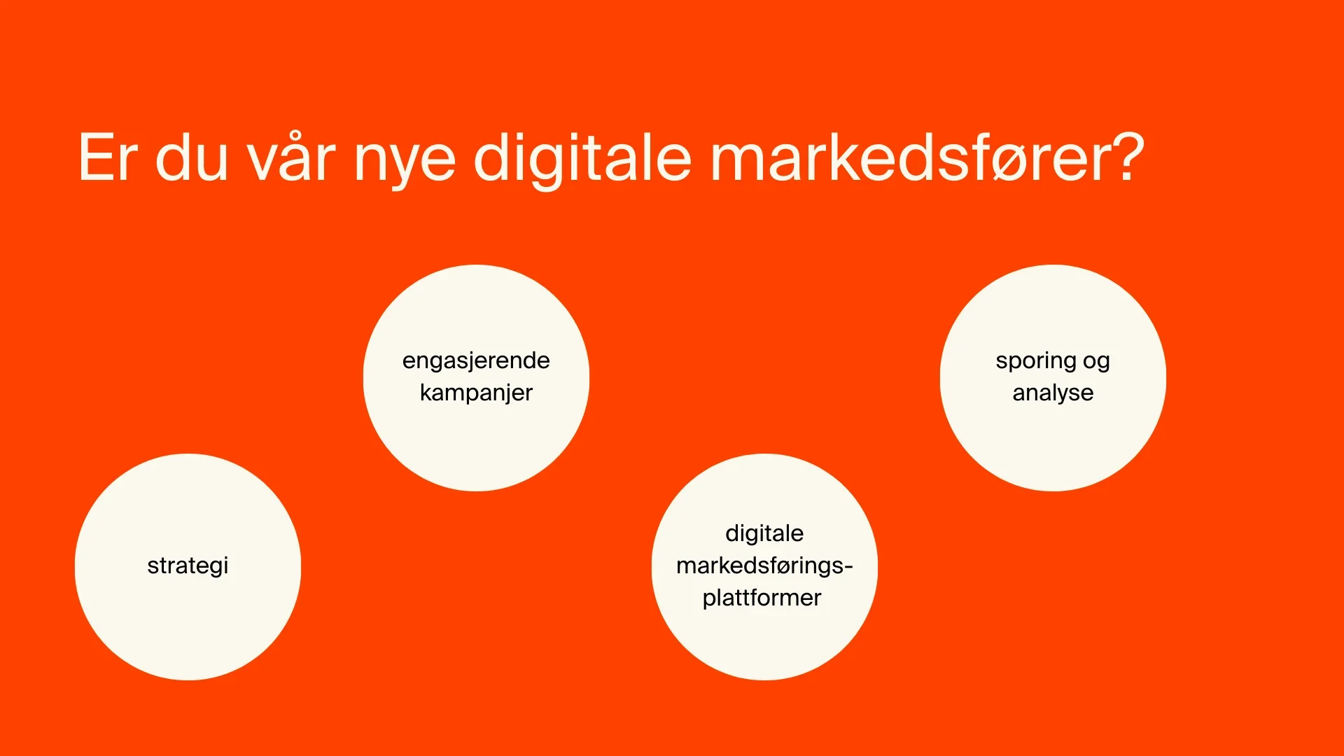 Digital markedsføring rommer mange fagområder. Vi forventer ikke at én person skal kunne eller ha ansvar for alt. Er du god på noen av områdene under? Da vil vi veldig gjerne høre fra deg!